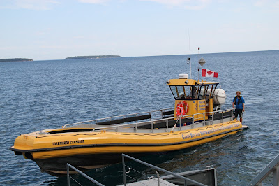 Barco da Guarda Costeira, construído pra não virar. Se virar, ele pode girar até 360 graus e voltar pra posição correta.